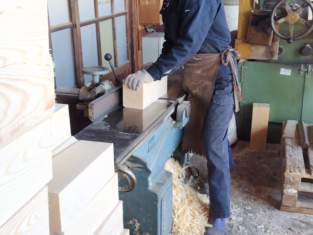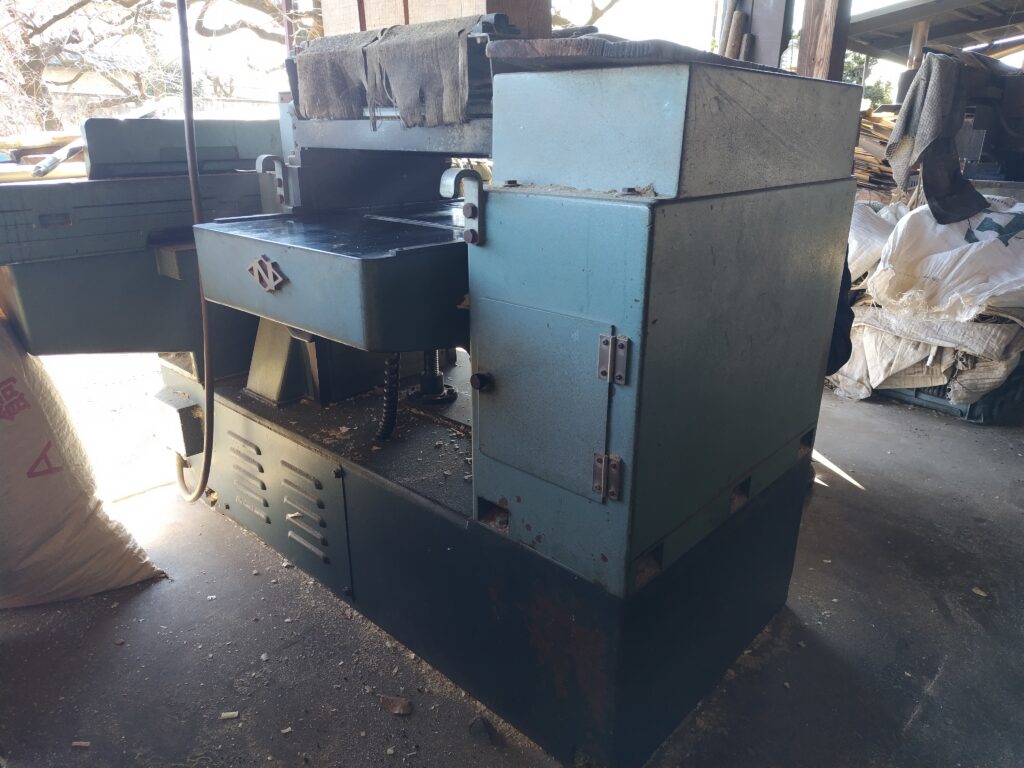 長さを整えたのなら今度は平面加工です。帯鋸で切断したままの断面は粗いままなので、これをプレーナーを利用して滑らかにすると同時に厚みの調節を行います。