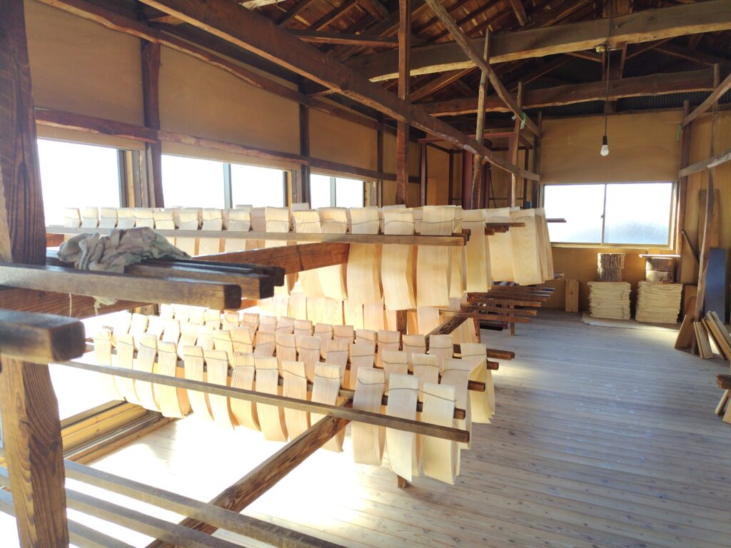 経木の製造には風の強さと乾燥が大事で、群馬が経木の一大生産地であったのも赤城山からのからっ風があったからという理由もあるそうです。つまり昔は外で乾燥させていたって事なんでしょうね。