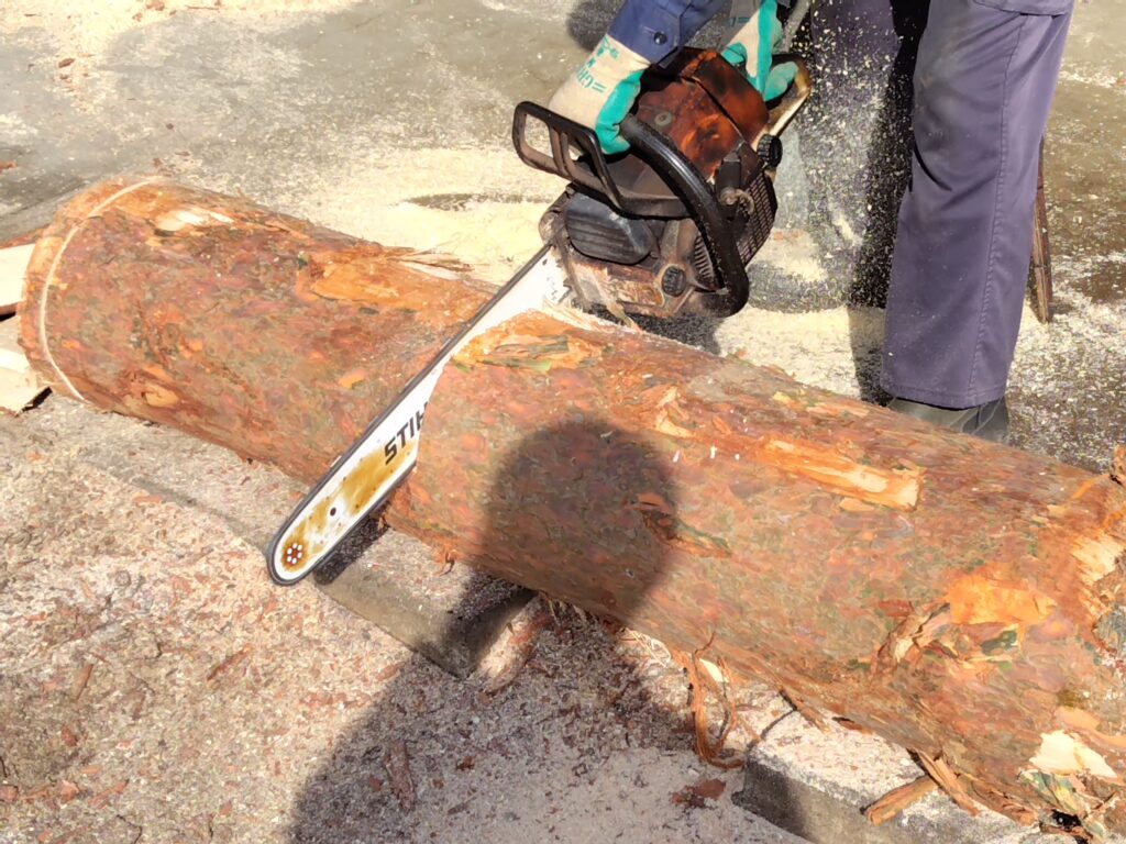 まさか経木の製造過程でチェーンソーの出番があるとは想像もしていませんでした
