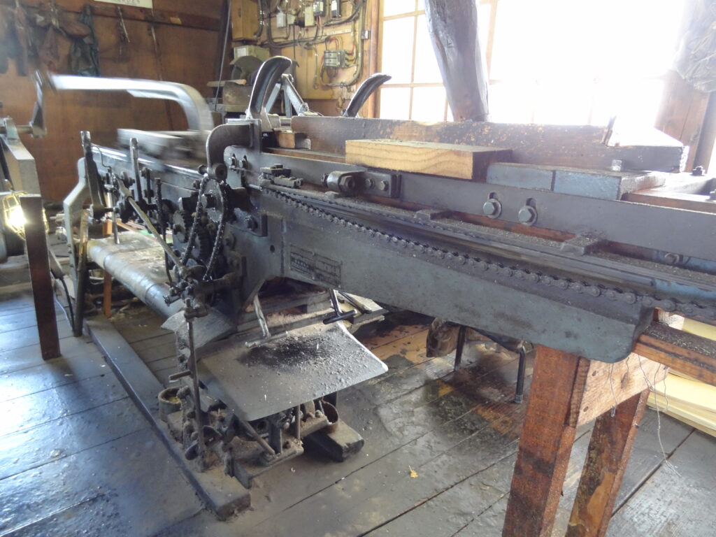 この刃物自体は経木専用という訳ではなく、元々は樽かなにかの製造で使われていたものだと仰られてました。経木の製造道具はこれに限らず他で使われている道具を流用している場合が多いです。先の帯鋸も同様です。